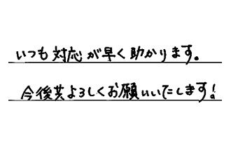 いつも対応が早く、助かります。今後共、よろしくお願いいたします!