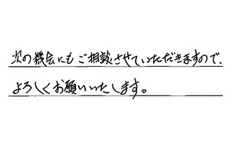次の機会にもご相談させていただきますので、よろしくお願いいたします。