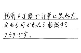 説明も丁寧で、非常に良かった。次回も何かあったら、相談するつもりです。