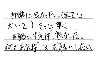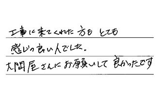 営業の方が丁寧、わかりやすい対応をしてくれて、よかった。また作業後の出来も、とてもよかったです。
