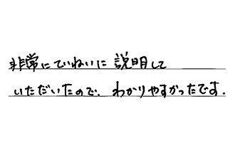 営業担当者の対応がとても良くて、聞いた事の受け答えがスムーズで、安心してお任せ出来ました。工事も満足しています。