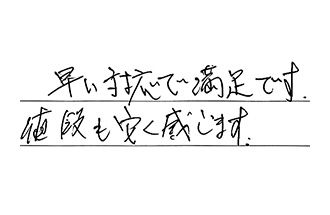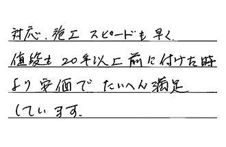 対応、施工スピードも早く、値段も20年以上前に付けた時より安価で、たいへん満足しています。