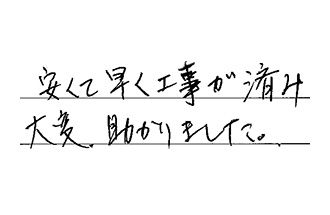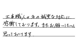 とにかくスピード感のあるご対応をいただき、感謝しております。また他に修理等がありましたら、お願いしたいと思います。ありがとうございました!