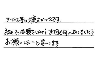 サービス等は大変よかったです。初めての依頼でしたが、次回も何かありましたら、お願いしたいと思います。
