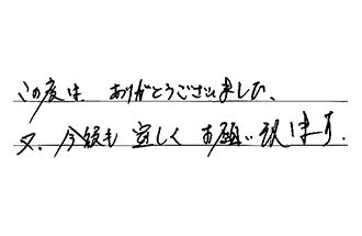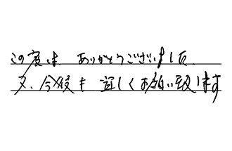 工事に来てくれた人、たった1人でもくもくと一生懸命やって下さった事に大変感謝していました。工事後張り切って食事の工夫に精を出しております。ありがとうございました。