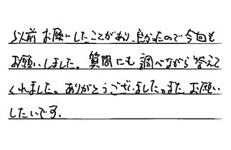 以前お願いしたことがあり、良かったので、今回もお願いしました。質問にも調べながら答えてくれました。ありがとうございました。またお願いしたいです。