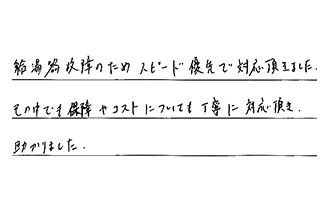 給湯器故障のため、スピード優先で対応頂きました。その中でも、保証やコストについても丁寧に対応頂き、助かりました。