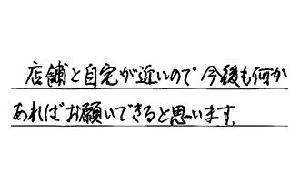 店舗と自宅が近いので、今後も何かあれば、お願いできると思います。
