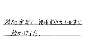 対応が早く、説明がわかりやすく、助かりました。
