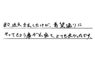 色々、注文を出したけど、希望通りにやってもらう事が出来て、とても良かったです。