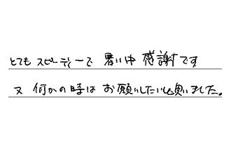 迅速かつ丁寧な対応で、とてもありがたかったです。今後も何かあれば、お世話になりたいと思いました。ありがとうございました!