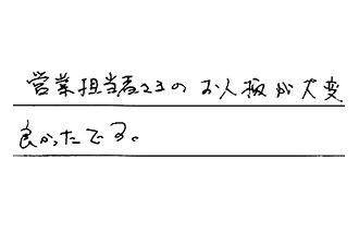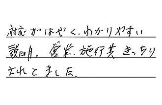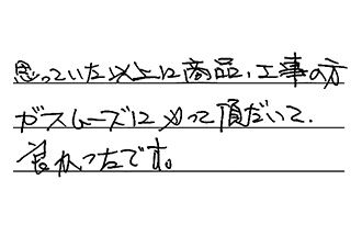 思っていた以上に、商品・工事の方がスムーズにやって頂いて、良かったです。