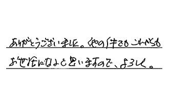 ありがとうございました。他の件でもこれからもお世話になると思いますので、よろしく。