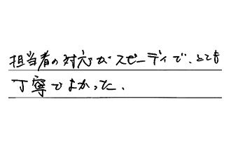 対応がとても丁寧でした。相見積もり店を批判せず、理論的に説明され、社内のスタッフも洗練され、とても感じ良かった。礼儀正しい方々でした。