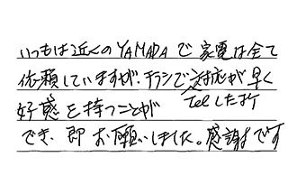 契約担当者や施工職人の方達の対応力優れた人間性に、貴社の発展性を感じました。今後共すばらしい社員の育成に期待します。
