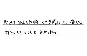 丁寧に対応していただけました。いろいろ相談にのっていただけたり、アドバイスいただけて、安心して任せられましたし、早く対応していただけて、大満足です。