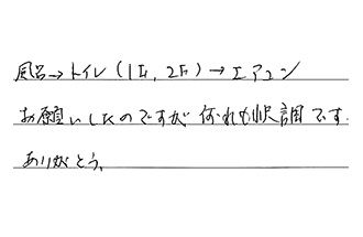 風呂 → トイレ(1F、2F) → エアコン お願いしたのですが、何れも順調です。ありがとう。