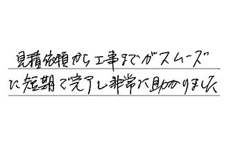 電話をしたその日に見積りに来てくれた。工事当日も朝早く対応してもらえて、希望の時間内で工事をしてもらえ、大満足です。担当の方の対応も良く、依頼して良かったです。
