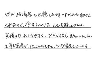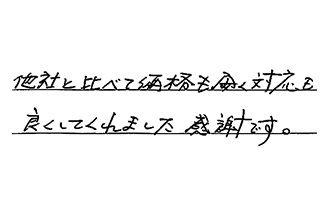 実に最初から最後まで、ていねいな応対でした。何年も前から、テレビ、チラシ等で知ってて、是非御社で…と思っていて正解でした。