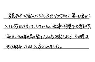 時間通りで丁寧な工事に満足しています。ありがとうございました。