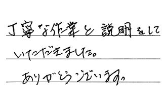 丁寧な作業と説明をしていただきました。ありがとうございます。