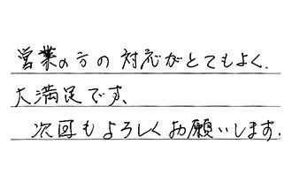 こちらの要望に対する的確な提案と、疑問に対しては、納得のいく説明で、不安もなく決めました。作業も迅速で、良かったと思います。