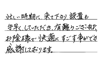 確かな技術、細かい心配り、風呂がま、湯沸し器、快適に使っています。ありがとうございました。
