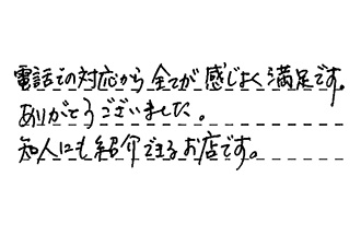 最初から大変スピーディーな対応で、大変満足しております。次回も又何かお願いする時は、よろしくお願い致します。