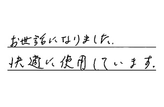 見積りも、工事までの対応も、スピードが早く、親切にして下さいました。価格がどこよりも安く、1ランク上の商品を選ぶことが出来て、満足しています。ありがとうございました。