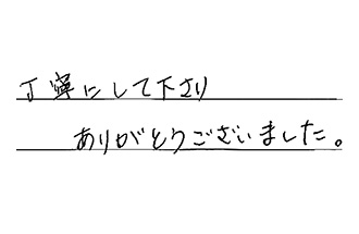 貴社との取り引きは初めてでしたが、非常に満足しております。以後も利用したい。