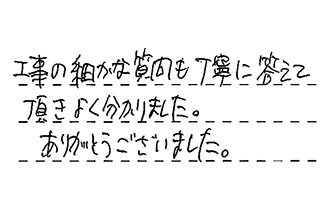 工事の細かな質問も丁寧に答えて頂き、よく分かりました。ありがとうございました。
