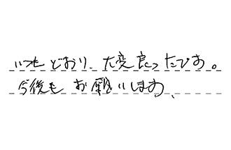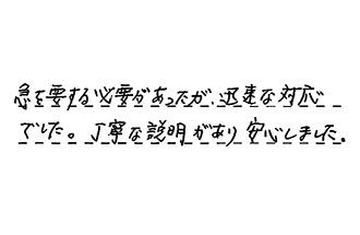 ネットで調べて初めての事で多少の不安がありましたが、対応も良く、大変満足しています。ありがとうございました。