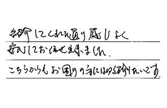 こちらの要望に対する的確な提案と、疑問に対しては、納得のいく説明で、不安もなく決めました。作業も迅速で、良かったと思います。