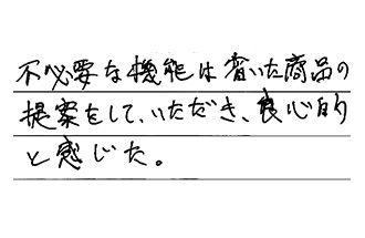 不必要な機能は省いた商品の提案をしていただき、良心的と感じた。
