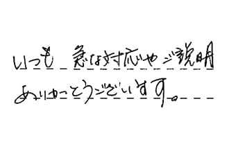 早急に対応して頂き大変助かりました。ありがとうございました。また何かあった際にはお願い致します。