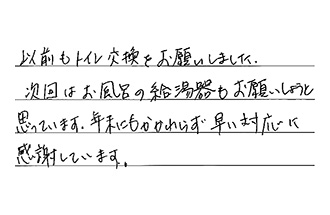 対応、施工等、すべてよかったので、これからも依頼したいと思っています。