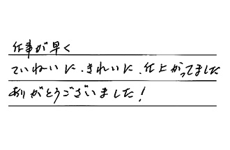 施工が早くて、とてもよかったです。キッチンもリフォーム予定ですので、よろしくお願いいたします。