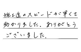 施工迄のスピードが早くて助かりました。ありがとうございました。