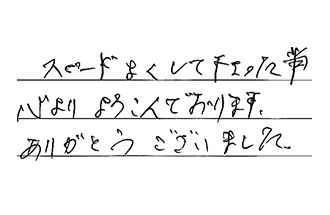 スピードよくして下さった事、心よりよろこんでおります。ありがとうございました。