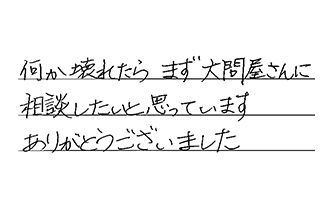 ご近所でも大問屋を利用されてる方が多かったので、すぐに連絡を入れたところ、早くに連絡頂き、対応も早く、本当に助かりました。ありがとうございます。