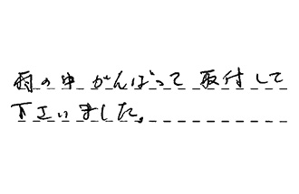 工事担当の方も、電話対応の方も、とても感じよく、親切にして頂いて、大満足です。これからも、お願いします。