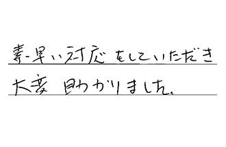 早い対応、ありがとうございました。次回もよろしくお願いします。