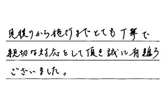 見積りから施工まで、とても丁寧で親切な対応をして頂き、誠に有難うございました。