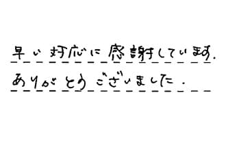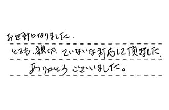 お世話になりました。とても親切、丁寧な対応して頂きました。ありがとうございました。