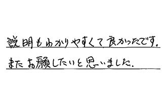 見積りを当日すぐに来て下さり、素早く値を出してくれました。工事当日も、工事士の方が、迅速・丁寧・気持ち良い対応で行って下さり、大変満足でした。