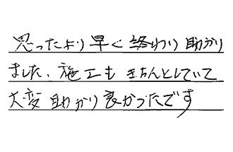 思ったより早く終わり、助かりました。施工もきちんとしていて、大変助かり良かったです。