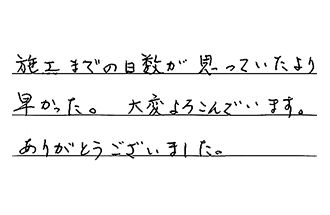 施工までの日数が思っていたより早かった。大変よろこんでいます。ありがとうございました。
