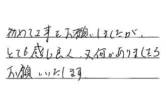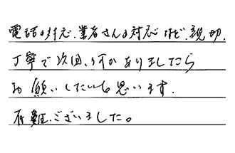 電話の対応、営業さんの対応など、親切・丁寧で、次回、何かありましたら、お願いしたいと思います。有難うございました。