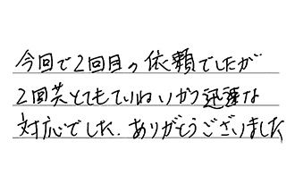 今回で2回目の依頼でしたが、2回共とてもていねいかつ迅速な対応でした。ありがとうございました。