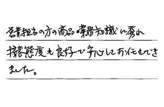 営業担当の方の商品・業務知識に秀で、接客態度も良好で、安心してお任せできました。